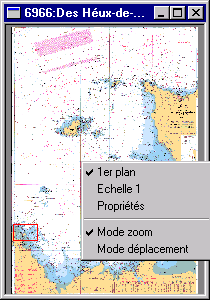 · Echelle 1 : Si on sélectionne cette entrée, la carte s'affiche à l'échelle 1 dans la fenêtre principale , centrée sur le point ou on a cliqué pour ouvrir le menu.