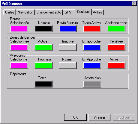 Les objets (Routes, Traces, Zones de Danger, et Waypoints ) peuvent également être Enregistrés ou lus sur disque grâce à : Menu-Fichier-Enregistrer Objets/Insérer Objets.