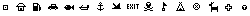 Il peut aussi y avoir un fichier avec l'extension ".msk" rajouté à la fin du nom complet (extension comprise) du fichier de symboles. Dans notre cas "garm12icon.bml.msk" . Ce fichier est un fichier BMP monochrome (1 bit) qui doit avoir les mêmes dimensions que "garm12icon.bml". Il contient le masque de l'image: seuls les pixels du symbole dont le pixel correspondant du masque est noir seront affichés, ceux étant à blancs seront transparents. Si le fichier ".msk" est absent, les icônes seront affichées de façon opaque. Voici le fichier de masque pour les icônes du garmin 12: